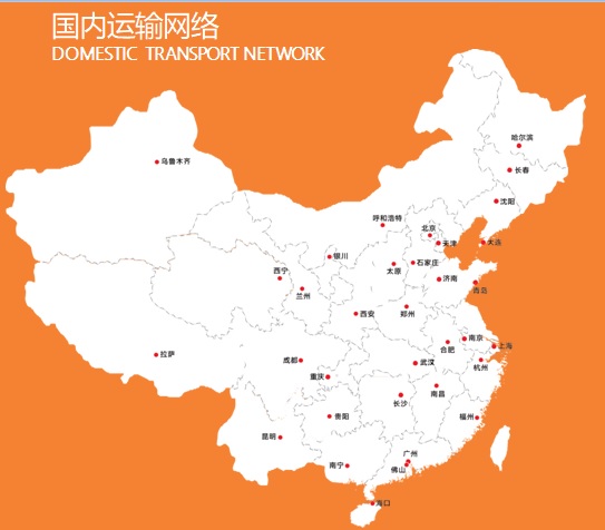 • Nationwide transport network and distribution coverage including the cities of Shanghai,Chengdu,Chongqing,Wuhan,Changsha,Nanjing,Tianjin,Qingdao,Jinan,Changchun,shenyang,Haerbin,Dalian,Guangzhou,Foshan etc.